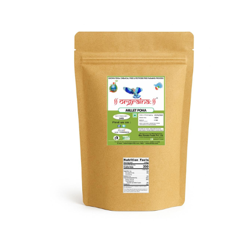 Discover the wholesome goodness of Orgraina Millet Poha, a nutritious breakfast option crafted through chemical-free and pesticide-free farming processes. This 500g pack offers a healthier alternative to traditional rice poha, bringing the nutritional benefits of millets to your daily meals. The golden-hued, flattened millet grains are perfect for creating traditional Indian breakfast dishes with a nutritious twist. Each serving provides 350 calories of energy-rich nourishment, making it an excellent choice for health-conscious individuals. The product comes in a convenient resealable kraft paper package that helps maintain freshness. This versatile grain can be used to prepare quick breakfast dishes, light evening snacks, or innovative recipes that combine traditional taste with modern nutrition needs. The naturally processed millet poha retains its authentic taste and nutritional properties while offering a satisfying, light meal option. Perfect for those seeking to incorporate ancient grains into their contemporary diet.